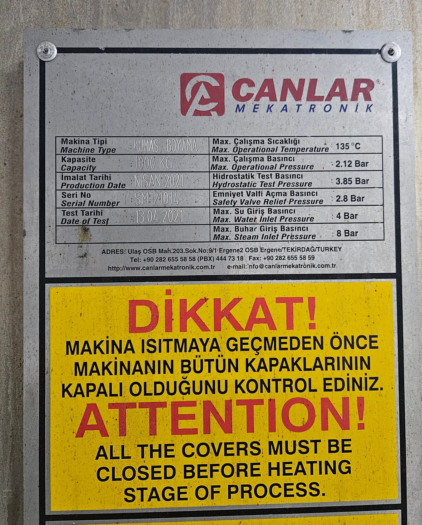 CANLAR HT. KUMAŞ BOYA MAKİNESİ - 1000KG - 2021